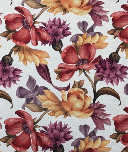 Panama Stampato Fiorato in altezza 140 cm , è adatto a confezionare tovaglie,cuscini,tovaglie,teli arredo e tende coprenti.