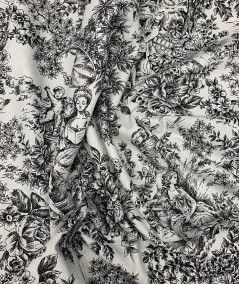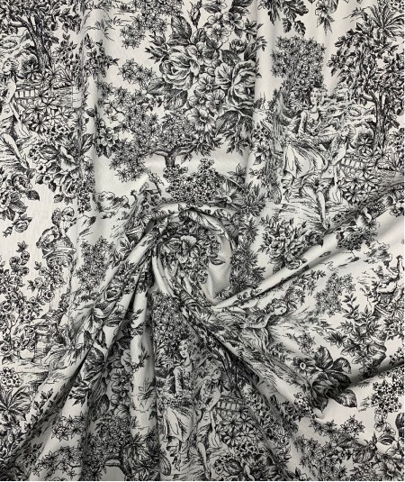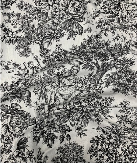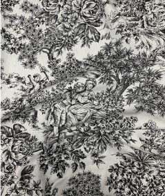 Tessuto di puro cotone in fantasia stampata di media consistenza. La tela de jouy panama è un tessuto senza tempo, su armatura nattè, derivata dalla tela per l'impiego di due o più fili sia nella trama che nell'ordito. Il “Panamino stampato” si utilizza per creare tovaglie e tovaglioli, runner e centritavola, cuscini moda e tendaggi di media pesantezza oppure copri letti estivi. Attenzione: il tessuto può calare dopo il lavaggio.