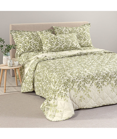Copriletto Trapuntato In Cotone Chiara Matrimoniale Verde Primanatura